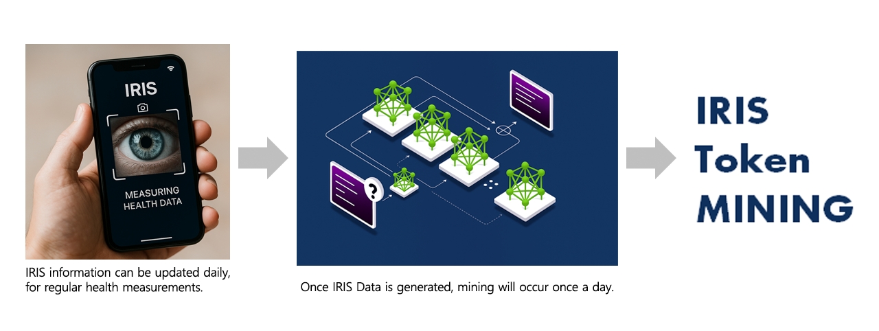 IRISは、プラットフォームに加入したユーザーが日々の虹彩スキャンを通じてマイニングを行える「日次虹彩スキャンマイニングサービス」を提供します。IRISプラットフォームは、誰でも簡単かつ安全にIRISトークンをマイニングしながら、健康を継続的に管理できるよう設計されています。