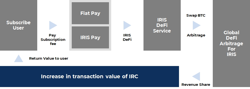 配布されたIRISトークンは、グローバルなDeFiサービスに預け入れ、追加利回りを生成することができます。また、国際的なアービトラージ戦略を通じて、分散型取引所間の価格差を活用してトークンの市場価値を高めます。